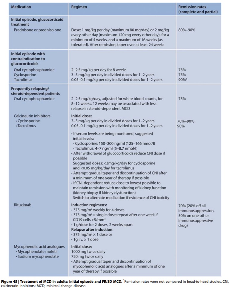 1.Ā Ā Ā Ā Ā Ā Ā Ā Kidney Disease: Improving Global Outcomes Glomerular Diseases Work G. KDIGO 2021 Clinical Practice Guideline for the Management of Glomerular Diseases, chapter 5 minimal change disease in adults. Kidney Int 2021;100(4S):S153-S160Ā Ā https://doi.org/10.1016/j.kint.2021.05.021.
